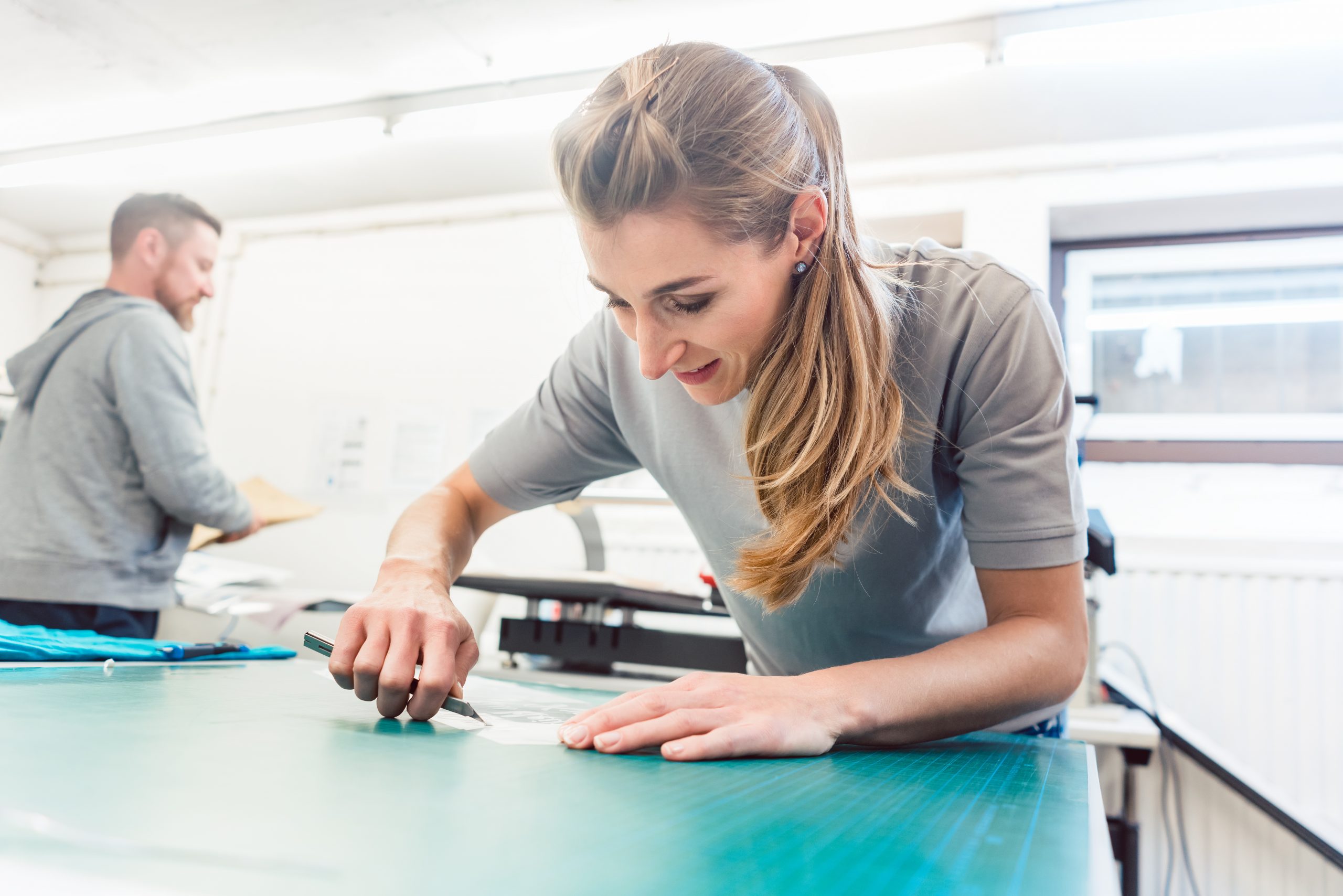 Die präzise Montage / Folierung der Drucke präsentiert Dein Unternehmen bestmöglich.